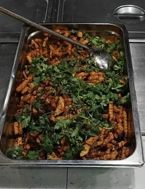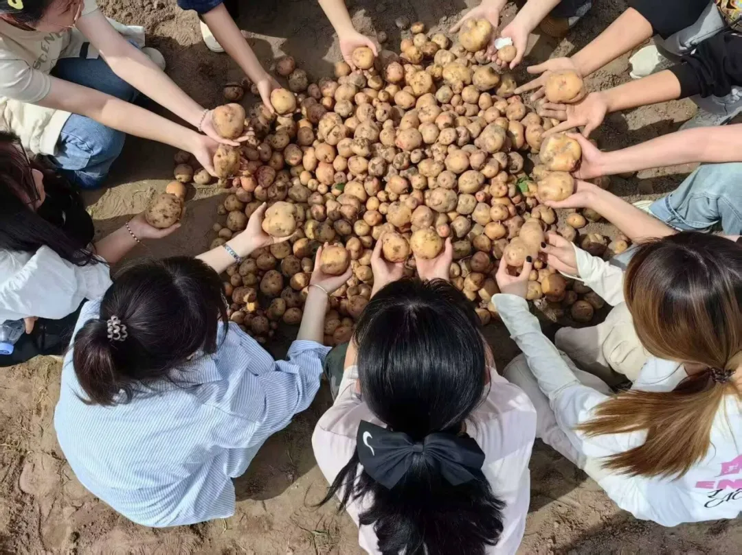 挖出的土豆经分拣与挑选后送往食堂。经师傅们的精心烹饪,次日午餐时段,师生们在食堂共享劳动成果。