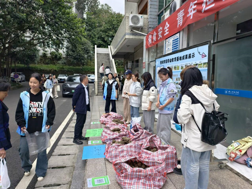 若实践止步于田地,教育便未竟全功。翌日,食堂门口上演了更为生动的“第二课堂”。昨日田间的收获,今日转化为可供流通的商品。“这是我们自己种的红薯!”热情的吆喝声中,蕴含的是劳动成果得到认可的喜悦。百余斤红薯很快被师生们争相选购一空。这不仅是简单的售卖行为,它完整构建了“生产—流通—价值实现”的社会化链条,让学子们真切触摸到劳动所承载的经济逻辑与社会属性,深刻理解了从“创造”到“赋能”的价值飞跃。