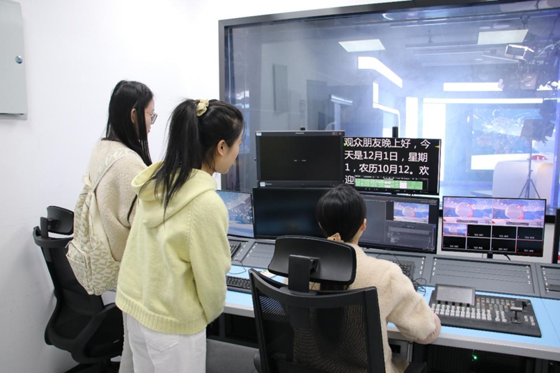 在中心内分组参与新闻报道策划、稿件编校、海报设计、短视频剪辑发布、播音练习及演播室录制等实操任务。通过完成具体且环环相扣的工作,学生们深刻体会到视听产品制作中严谨的技术规范、重复的调试过程以及所需的专注与耐心。