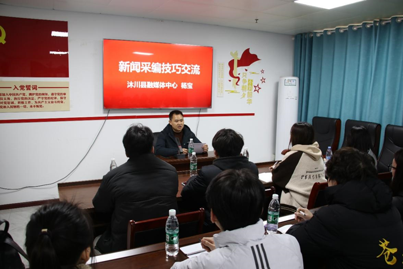 上午,师生在中心记者车润的带领下了解日常运作。随后,新闻信息采集中心主任杨宝就新闻选题、采访及稿件撰写进行专题交流;编辑分发中心主任余洋通过案例拆解,系统讲解县级融媒短视频从策划、拍摄到剪辑分发的完整工序与技术协调要点。两场讲座帮助学生建立起对新闻生产系统性、协作性的框架认知。